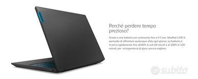 Il Lenovo IdeaPad L340 è un notebook dalla configurazione hardware equilibrata, veloce, capiente e potente, adatta a chi col proprio portatile intende giocare o lavorare bene anche con applicazioni per disegno 3D o per montaggio video. Ciò è reso possibile da un processore Intel Core i7 di nona generazione della più veloce serie H e da una scheda grafica dedicata di fascia media, coadiuvati da una generosa quantità di RAM e da un drive a stato solido con interfaccia PCIe NVMe.
