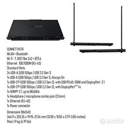 ✅ Periferiche : USB Type-C Thunderbolt 4: permette la trasmissione video e dati ; 2 x USB 3.2 Gen.2 : fino a 10 GB/s ; 1 x HDMI 2.1 : supporta 8K@60Hz, 4K@120Hz, Dynamic HDR, eARC, Dolby Atmos ;WebCam FullHD : per le tue Play Call, conference call