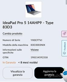 Vendo per non utilizzo, Lenovo IdeaPad Pro 5 14AHP9 (Modello 83D3), acquistato recentemente e tenuto in condizioni maniacali. II computer è esteticamente pari al nuovo, senza graffi, segni di usura o ammaccature. Si tratta di una macchina estremamente potente, ideale per professionisti, studenti o creativi, grazie al processore di ultima generazione con accelerazione Al. Caratteristiche Principali: • Processore: AMD Ryzen™ 7 8845HS (High Performance) • Display: 14" OLED 2.8K (2880×1800) a 120Hz - Colori spettacolari e neri assoluti. • Scheda Grafica: AMD Radeon™ 780M (ottima anche per editing video e gaming leggero). • Design: Chassis in alluminio, leggero e sottile (circa 1.4kg). Stato del Prodotto: • Condizioni: 10/10 (Nuovo esteticamente). • Garanzia: Ancora coperto da garanzia ufficiale Lenovo per circa 8 mesi (documentabile da seriale). • Corredo: Incluso di scatola originale integra e caricabatterie originale in dotazione. Prezzo trattabile