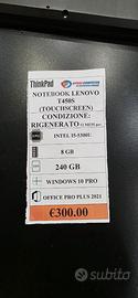 NOTEBOOK LENOVO T450S (RIGENERATO) CPU INTEL I5-5300U RAM 8GB SSD 240GB WINDOWS 10 PRO OFFICE PRO PLUS 2021
