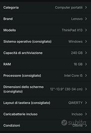 Notebook Lenovo in ottime condizioni, pronto all’uso. •Processore: Intel Core i5-1145G7 (11ª generazione, fino a 2.6 GHz) •RAM: 16 GB •Archiviazione: 238 GB SSD •Grafica: Intel Iris Xe •Sistema: Windows 11 Perfetto per lavoro, studio e uso quotidiano. Veloce e affidabile. Prezzo interessante – contattami per maggiori informazioni!
