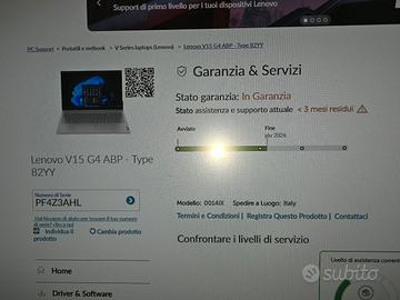 Notebook Lenovo modello V15 G4 CPU AMD R7 773 RAM 16 GB HDD M2 512 GB DISPLAY 15.6' WINDOWS 11 PRO COME NUOVO ANCORA 3 MESI DI GARANZIA UFFICIALE LENOVO EVENTUALMENTE SI PUÒ ANCORA ACQUISTARE L'ESTENSIONE PER ALTRI 2 ANNI