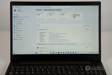 Sono un rivenditore, emetto regolare fattura di vendita IVA 22% per i possessori di partita IVA, equivalente scontrino per acquirente privato garanzia 3 mesi batteria esclusa PREZZO NON TRATTABILE Notebook Lenovo V15-IIL 15,6 pollici modello 82C5 Processore Intel I3 10 gen 1005G1 1,2 Ghz 8 GB ram espandibile Hard disk 256 GB ssd schermo con risoluzione 1920x1080 15,6 pollici perfetto senza diffetti batteria perfetta webcam, bluetooth, wifi, uscita HDMI alimentatore originale senza scatola esteticamente perfetto nessun difetto, funziona perfettamente nessuna parte sostituita nessuna riparazione eseguita
