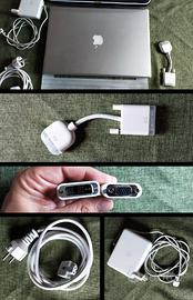 Fornito con alimentatore e cavo, pellicola protezione tastiera, adattatore uscita VGA - DVI, telecomando- TUTTI ORIGINALI Aggiungo una custodia morbida. NB: La batterie (originale) va sostituita.