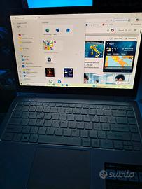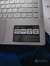 Notebook Mediacom modello Flexbook Edge 13, ultra sottile,struttura in alluminio, display Full HD da 13.3 pollici touch screen, il display ruota di 360° trasformandosi in tablet, memoria 32 GB ma è installata una scheda di espansione di memoria SSD da 256 GB, 4 GB di RAM, CPU 2.4 GHz, WIFI, Bluetooth, uscita video micro HD, sistema operativo Windows 10.
