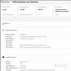Notebook Microtech e-book lite Schermo 10.1" RAM 4Gb HDU SSD 500Gb WD Windows 11 Pro