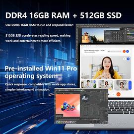 [16 GB di RAM e 512 GB di ROM] Questo laptop è dotato di 16 GB di memoria DDR4, che offre più spazio e prestazioni più veloci del 50% rispetto ai modelli con memoria DDR3, consentendo di gestire in modo efficiente più programmi e attività contemporaneamente. L'SSD da 512 GB integrato offre ampio spazio di archiviazione, garantendo un funzionamento fluido del sistema anche quando si archiviano più file personali. Hai bisogno di più spazio? Questo laptop compatto può essere espanso con una scheda TF da 64 GB, consentendoti di archiviare ancora più tesori digitali.