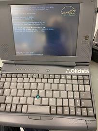 vendo "cimelio" anni '90 perfettamente funzionante. quando si apre c'è una parte della plastica dello schermo che è parzialmente rotto ma non ne compromette la visibilità/uso. Inoltre è possibile attaccare un video esterno. Completo di masterizzatore esterno e di lettore Floppy Disk originali. pesa 1.3Kg, processore Pentium 266MMX di Intel; un display da 8.2 con Touch Screen, 32MB di memoria RAM, Hard-Disk da 3.2GB e Windows 98, modem interno da 56KB, sezione audio stereo 16 bit, supportata dalla presenza di due altoparlanti e da un microfono La dotazione di porte risulta veramente completa e comprende, oltre alle classiche Seriale e Parallela, la moderna USB e una IrDA per i collegamenti ad infrarossi e quindi senza fili