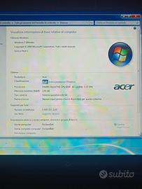 - Processore Intel Atom Z520 (1 core/2 threads) con velocità 1.33Ghz a 32bit