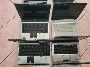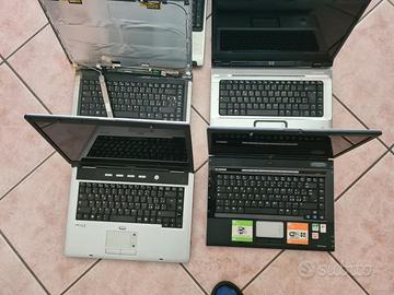 Vendo Notebook HP ACER COMPAQ TOSHIBA MSI per ricambi tutti senza RAM-Disco-Alimentatore con spese di spedizione incluse : Compaq Presario700 15 euro Hp DV6137ea (problema scheda video ) 25 euro Hp DV6710el (problema scheda video ) 25 euro HP Pavilion DV5000 20 euro Acer Aspire 5520 (problema scheda video ) 30 euro condizioni ottime Acer 5510 BL50 15 euro Acer Aspire 9412ZWSMi 20 euro Acer Aspire 5600AWLMi 20 euro Toshiba satellite A100-750 25 euro FijtsuSiemens Amilo Pi 1536 20 euro MSI U135 netbook 15 euro HP Compaq nx6110 (non in foto) 20 euro Ritiro a mano al mio domicilio o spedizione da pagarsi e concordare a parte. N.B.: nel caso di vendita a distanza che necessita spedizione, la trattativa è gestita direttamente (non con il servizio “tuttosubito” e non inviatemi quindi proposte acquisto tramite l'opzione dedicata del sito), pagamento con bonifico anticipato oppure paypal (+ spese commissioni )