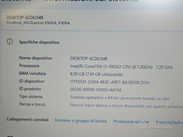 Notebook Portatile Asus K509J 15.6” Intel i3-1005G1 8Gb 256Gb M.2 HDMI USB-C #B