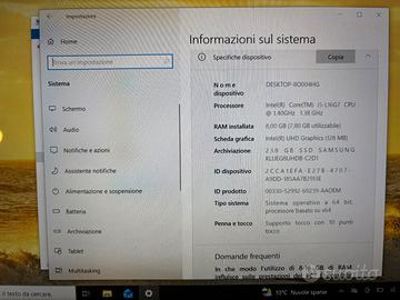 Notebook ultra portatile Samsung Galaxy book np767xcm sottilissimo pesa appena 950 grammi la batteria è in condizioni accettabili ben funzionante e con condizioni estetiche come da foto (piccola ammaccatura nella parte inferiore che non pregiudica il funzionamento) Schermo 13 pollici TOUCHSCREEN full HD 1920x1080 - Processore Intel i5 1.40ghz - Disco interno Samsung UFS SSD da 256 GB - RAM 8GB - 2 USB C - Windows 10 Venduto con la formula visto e piaciuto