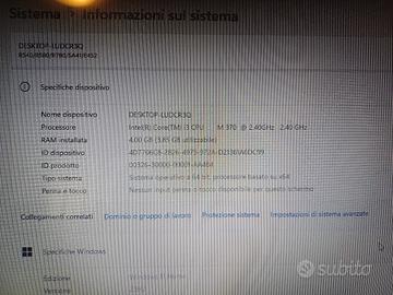 - **Processore:** Intel Core i3 M370 2.40GHz, 64-bit