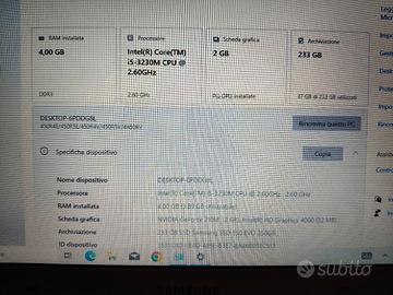 Vendo notebook Samsung con processore i5. HD SSD da 250gb. 4 GB di RAM. Win 10 aggiornato. alimentatore. Batteria scarica. Tenuto molto bene.