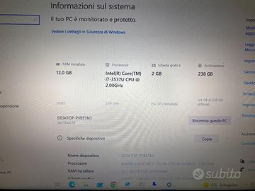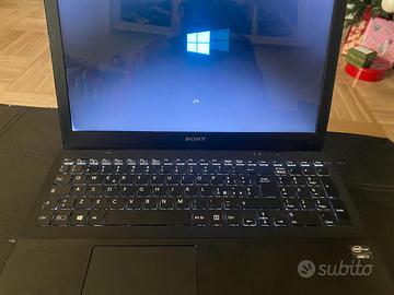 Notebook sony vaio con processore I7 Scheda video con 2 GB dedicati 12 GB di ram totali Hard disk in ssd da 256 GB HDMI USB lan Web cam Wifi Masterizzatore DVD Tastiera retroilluminata Perfettamente funzionante e performante ATTENZIONE prezzo basso perche il display come da foto è stato fermato con 3 bulloni e il monitor presenta aloni, come in foto, sui 4 angoli. Completo di carica batteria originale