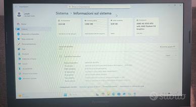 Notebook in perfette condizioni, con SSD Kingston da 256, molto veloce. RAM 8GB CPU AMD Windows 11 DVD Batteria nuova. Perfettamente funzionante e in eccellenti condizioni. Si può vedere e provare a Bergamo o in zone limitrofe. Consegna SOLO a mano.