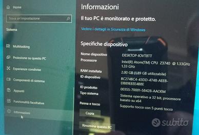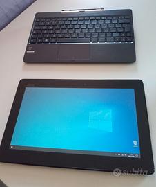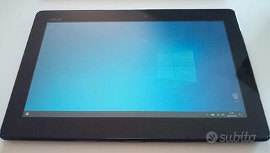 Vendo Asus T100TA-DK002H con schermo IPS HD Ready da 10.1 pollici, processore Intel Atom quad core Z3740, scheda grafica integrata con memoria condivisa Intel HD Graphics (Bay Trail), disco rigido eMMC da 32 GB, 2 GB di ram LPDDR3-1066, Wi-Fi, bluetooth + una USB 3.0 micro, una USB 3.0 (nella dock con tastiera), e una micro HDMI, Windows 10 Pro.