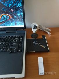 Vendo notebook marca toshiba da 15.6 pollici in ottimo stato,nessun segno di usura,sistema operativo windows (già ripristinato),processore intel,hard disk nuovo,wify incorporato, 3 porte USB,pacchetto office,masterizzatore dvd,la batteria stando sempre attaccata alla corrente si è rovinata (originale costa 15 euro,non originale costa 12 euro). completo di caricabatterie originale toshiba,compreso nel notebook do in dotazione una pennina con SIM per il collegamento ad internet dove non c'è il wify e una web cam nuova. il tutto in ottimo stato.