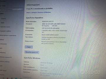 Per inutilizzo vendo notebook Toshiba Satellite C70D-B-10X con processore AMD A4, scheda grafica Radeon R3, 8gb RAM e SSD da 128gb; è perfetto per studenti di medie e superiori.