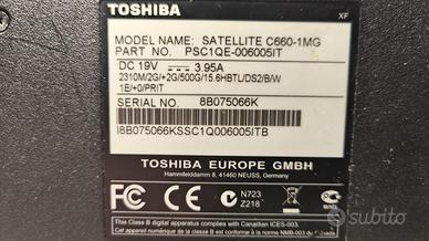 NOTEBOOK TOSHIBA SATELLITE C660-1MG, intel I3, 4g ram, ssd 120, WIN 10PRO ITA Modello : NOTEBOOK TOSHIBA SATELLITE C660-1MG PROCESSORE : Intel I3 2310M RAM : 4 GB HARD DISK : SSD 120GB SCHERMO : 15,6" Scheda Video : Nvidia Geforce 315M PORTE USB, WIFI, LAN, USCITA VIDEO VGA ,WEBCAM SIATEMA OPERATIVO :WIN 10 PRO ITALIANO AGGIONABILE E CON LICENZA PC TENUTO BENE non ha graffi ne colpi BATTERIA OK COMPLETO DI ALIMENTATORE FUNZIONA TUTTO