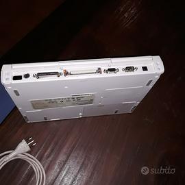 Notebook Vintage COMPAQ ARMADA 7370 DT, completo di tutto compreso alimentatore originale. La batteria sembra esausta in quanto premento il tasto accensione in computer non da segno di vita. Collegando l'alimentatore e premendo il tasto accensione si illuminano e lampeggiano le due spie esterne in basso a destra. Le condizioni estetiche, salvo la piccola crepa sulle cerniera sinistra, sono buone senza rotture, rigature e segni evidenti.