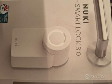 Vendo serratura intelligente Nuki Smart Lock 3.0, colore bianco, originale e completa di imballo, supporti di montaggio e accessori forniti di serie. Il prodotto è stato solo aperto dalla confezione per testarne l'accensione e le funzioni di base, quindi è pari al nuovo.
