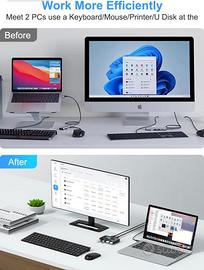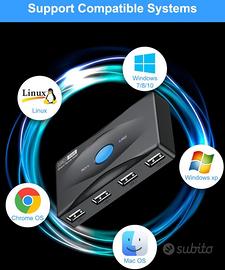 [Velocità 5 Gbps e sistemi compatibili]: Questo switch KVM USB 2.0 ha una velocità di trasferimento fino a 5 Gbps (10 volte più veloce dell'USB 2.0, maggiore risparmio di tempo, può trasferire 1 GB di foto in 5 secondi) ed è anche compatibile con i dispositivi USB 2.0 e USB 1.1. Inoltre, supporta Windows 11/ 10 / 8.1 / 8 / 7 / Vista / XP、Linux、MacOS, Plug and play, non è necessario installare driver in aggiunta.
