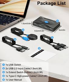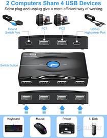 NUOVO KVM Switch USB 2.0, Switch KVM 5 Gbps 2 Ingressi 4 Uscite, 4 Porte USB per 2 PC Switch KVM USB, Dispositivo di Commutazione con 2 Cavi USB per Tastiera-mouse/Stampante/Disco/Telecamera/Scanner