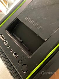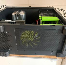 Fantastico Case Cooler Master 690 II NVidia Edition e alimentatore MasterWatt Lite 500W. Il case e' stato moddato isolandolo acusticamente con on pannelli antirumore specifici su misura (vedi immagini allegate) da tutti i lati. Il flusso dell'aria viene garantito da 2 ventole Coolink SWiF2-120. Quindi le ventole originali (molto rumorose) sono state sostituite. Rimuovere i pannelli fonoassorbenti per ritornare alla configurazione originale. Ideale per schede madri con controllo temperatura interna e velocita delle ventole. Dimensione: 214,5 x 511 x 528,8 mm (LxHxP) Bay Disponibili: 1x Dock HD SATA (esterno) 4x 5,25" (esterni) 1x 3,5" (esterno, usando un bay da 5.25") 6x 3,5" (interni) 1x 2,5" + 1x 1,8" (interni, utilizzando bay da 3.5") Pannello I/O: 2x USB 2.0 1x eSATA 1x Audio IN / OUT
