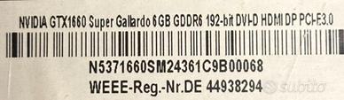 nVidia GeForce GTX 1660 super 6GB GDDR6 Gallardo, come nuova.