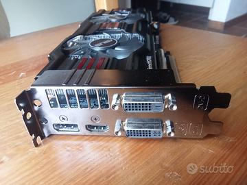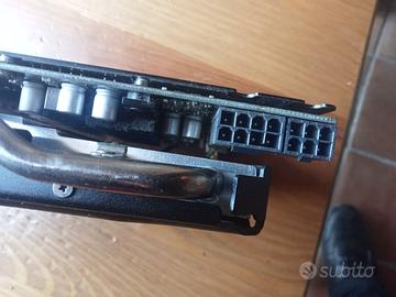 Nvidia GeForce GTX 770 2GB GDDR5 & Cavi di Alimentazione, Bootscreen, 4k, Mojave e successivi. GPU Upgrade per Apple Mac Pro 3.1 - 4.1 - 5.1 (2008 - 2012). Firmware sostituito con quello originale per Apple Mac Pro edition. Scheda necessaria per installare i sistemi operativi Apple più recenti dove è richiesta la funzione Metal, supportata. Molto fredda e silenziosa anche sotto carico. Specifiche Motore Grafico: Architecture: NVIDIA Kepler Cpu Tecnology: 28 Nm (Tecnologia Boost) Core Clock : 1085 MHz Cuda Cores: 1536 Specifiche Memoria: Clock Memoria Effettivo: 7000 Mhz Quantità Memoria: 2048 Mb Profondità Interfaccia: 256-Bit Banda Passante: 224 Gb/s Caratteristiche di Rilievo: Sistema di dissipazione di calore ultra silenzioso. Supporto per DirectX 11, DirectCompute, OpenGL 3.2 e OpenCL 2.1 True Quarz Extreme, Core Image e Core Animation, Apple ColorSync, Apple Motion e Apple Aperture Metal Compatibile Supporto Display: Apple bootscreen su tutte le uscite video (fino a risoluzioni di 2560x1600 pixels) Porte Attive: 1 x DVI-I; 1x DVI-D; 1 x HDMI; 1 x DISPLAY PORT Massima Risoluzione Digitale: 2560x1600 @ 60Hz Tecnologia 4K (3840x2160) supportato da Os X Yosemite 10.10.3 e successivi via DisplayPort a 60hz e HDMI a 30hz Requisiti di Sistema: Hardware: Tutti gli Intel Mac Pro 3.1, 4.1, 5.1 da inizio 2008 a fine 2012 Software: Da Mac OSX Mountain Lion 10.8.3 a Catalina ed oltre (dipende dal modello, controlla sul web) e Bootcamp per Windows Specifiche Elettriche: Massimo Assorbimento di Corrente (TDP Max): 225 Watt Connettore Supplementare di Corrente Pci-E: 1x 6-Pin + 1x 8-Pin Contenuto della Confezione: 1x Scheda Grafica NVIDIA GeForce GTX770 2GB GDDR5 Apple Mac Pro 3.1 - 4.1 - 5.1 1x Cavi di Alimentazione Pci-e per Apple Mac Pro mini 6-Pin/6 Pin 1x Cavi di Alimentazione Pci-e per Apple Mac Pro mini 6-Pin/8 Pin