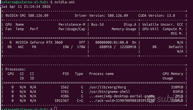 Scheda NVIDIA GeForce RTX 3060 12GB GDDR6 praticamente nuova, acquistata solo un mese fa. Utilizzata per un progetto personale con LLM e Ollama, ora la cedo perché ho bisogno di una scheda con più VRAM. La scheda è stata utilizzata in modo rispettoso e si trova in eccellenti condizioni. È poco rumorosa e mantiene sempre la temperatura sotto controllo. Se sei interessato a un modello fino a 9b, questa scheda potrebbe essere perfetta per te! Non ho esperienza con l’uso gaming. Le mie recensioni dimostrano la mia serietà.