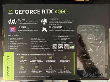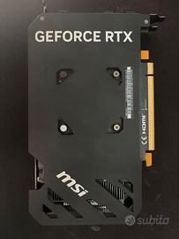 Vendo la mia MSI GeForce RTX 4060 Ventus 2X 8GB (modello Black, versione OC) perché non la utilizzo più. La scheda è in condizioni perfette, come nuova: Nessun segno di usura Mai overclockata oltre le impostazioni di fabbrica Sempre tenuta in un case con buon airflow Polvere zero (pulita prima della vendita) Funziona alla perfezione, temperature basse grazie al sistema di raffreddamento a doppia ventola TORX Fan 4.0 con tecnologia Zero Frozr (ventole si spengono quando non serve) Specifiche principali: 8 GB GDDR6 3072 CUDA Core Architettura NVIDIA Ada Lovelace Supporto completo a DLSS 3/4, Ray Tracing, Frame Generation Uscite: 3x DisplayPort 1.4a + 1x HDMI 2.1a (supporta 4K@120Hz e 8K) Consumo molto basso (solo 115-120W) Alimentazione con un solo connettore 8-pin Perfetta per giocare in Full HD (1080p) a dettagli alti/ultra con ottimi FPS, ma gestisce bene anche il 1440p. Ideale per gaming, streaming e produttività. La vendo completa di scatola originale e tutto il necessario.