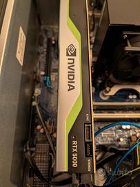 Vendo scheda video professionale NVIDIA Quadro RTX 5000 (architettura Turing), ideale per workstation grafiche, rendering fotorealistico, montaggio video 4K/8K e calcolo computazionale (AI/Deep Learning). La scheda è in condizioni estetiche e funzionali eccellenti, utilizzata esclusivamente in ambiente desktop professionale (niente mining, niente overclock). Specifiche principali: Memoria: 16 GB GDDR6 con supporto ECC (Error Correcting Code). Core CUDA: 3072 RT Core: 48 (per Ray Tracing in tempo reale). Tensor Core: 384 (per accelerazione AI). Uscite Video: 4x DisplayPort 1.4 + 1x VirtualLink (USB-C). Consumo (TDP): 265W (richiede alimentazione 8-pin + 6-pin).