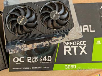 Vendo scheda grafica NVIDIA GeForce RTX 3060 12GB per passaggio a nuovo pc. ASUS Dual NVIDIA GeForce RTX 3060 V2 OC Edition 12GB GDDR6 192-bit Uscite video 1 HDMI 2.1, 3 DisplayPort 2.1