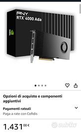 Vendo scheda video NVIDIA RTX 4000 ADA, nuova, mai usata e ancora sigillata. Scheda professionale di fascia alta, ideale per: •rendering 3D •CAD / progettazione •AI e machine learning •workstation professionali 📦 Condizioni: nuova, imballo originale sigillato 💰 Prezzo di listino: oltre 1400 € 📌 Motivo della vendita: chiusura negozio di elettronica.