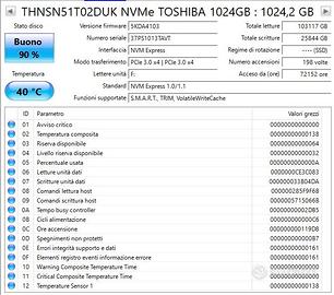 THNSN51T02DUK NVMe TOSHIBA 1024GB. Completamente funzionante come da test di Crystalinfo che troat foto