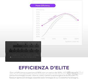 EFFICIENZA D'ELITE: Con un'efficienza superiore al 90% al 50% del carico, il C1200 riduce il consumo energetico per ridurre i costi mensili e prolungare la durata del PC. Non c'è spreco di energia: assorbe solo l'energia necessaria al sistema.