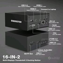🌟 Stazione di docking multifunzione che trasforma il tuo laptop in una workstation potente con supporto per tre schermi.