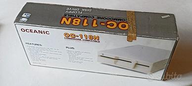 Disk drive Oceanic OC-118N, anni 80 testato e funzionante con tutta la dotazione ossia: alimentatore, cavo seriale, manuale e scatola con polistiroli in eccellenti condizioni data l'età.