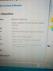 vendo PC fisso marca olidata con processore i5 3470 (3,2 GHz) quad core ,8 GB di RAM ,disco primario SSD da 128 GB con installato Windows 10 pro , secondo disco da 500 GB. scheda video dedicata da 512 mb con uscite HDMI, VGA, DVI. PC perfettamente funzionante e ripristinato alle condizioni originali,all acquisto abbino monitor Samsung da 22 pollici full HD.