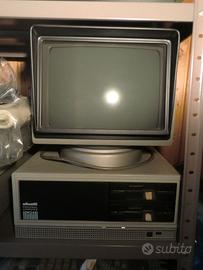 Olivetti M24 vintage, schermo fosfori verdi, doppio floppy. Funziona perfettamente, vendo dalla mia collezione privata. Revisionato l'alimentatore, rimossa la batteria a tampone e lubrificato i floppy. Con protezione schermo tipo retina nera che lo rende ancora più speciale. Non spedisco perché fragile, solo scambio a mano. Venite a provarlo di persona. Vendo assieme a floppy del sistema operativo e qualche gioco. Sono un collezionista, ho molti altri pc vintage.