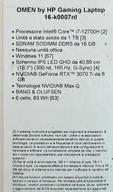 Vendo OMEN by HP 16-k0007nl, notebook top di gamma, ideale per gaming ad alte prestazioni, rendering, modellazione e progettazione architettonica 3D, CAD, Unreal Engine, Blender, ecc.