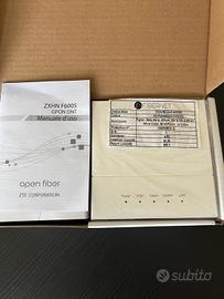Vendo ONT GPON convertitore fibra ottica ZTE ZXHN F6005 marchiato Open Fiber, completo di scatola originale, alimentatore e manuale d’uso. Caratteristiche • Tipo: GPON ONT (terminal fibra ottica per FTTH) • Produttore: ZTE Corporation • Modello: ZXHN F6005 • Standard: ITU‑T G.984.x GPON • Porta fibra: 1x connettore SC/APC • Porta di rete: 1x RJ45 Ethernet 2.5GBASE‑T (fino a 2,5 Gbps) • Indicatori LED: Power, PON, Alarm, Update, LAN • Alimentazione: ingresso 12 V ≈ 0,5 A (alimentatore originale incluso) • Montaggio: predisposizione per fissaggio a muro • Colore: bianco Il dispositivo è ideale come ONT esterno per connessioni FTTH su rete Open Fiber (a seconda delle politiche del tuo operatore). Non è un modem/router Wi‑Fi ma un terminale ottico da collegare al tuo router tramite cavo Ethernet. Contatto/WhatsApp: 3408849544