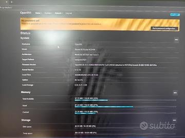 Prezzo non negoziabile Senza scatola originale Vendo Xiaomi AC2100 con OpenWRT già installato, pronto all’uso per chi cerca rete stabile, personalizzabile e performante. Ideale per smart‑home, VPN, QoS avanzato, gestione VLAN e reti complesse. 🔹 Condizioni: usato ma perfettamente funzionante 🔹 Firmware: OpenWRT (aggiornabile) 🔹 Wi‑Fi: Dual-Band 2.4/5 GHz fino a 2033 Mbps 🔹 Antenne: 6 antenne integrate ad alta potenza 🔹 Ideale per: gaming, streaming, reti domestiche avanzate, gestione traffico 📌 Modelli compatibili per permuta (OpenWRT): Redmi AC2100, Xiaomi Mi Router 3, Xiaomi Mi Router 3G, Xiaomi Mi Router 4, Xiaomi Mi Router 4A, Xiaomi Mi Router 4A Gigabit, Xiaomi Mi Router 4C, Xiaomi Mi Router 4Q, Xiaomi Mi Router AX1800, Xiaomi Mi Router AX3600, TP‑Link Archer C7, Archer C8, Archer C9, Archer A7, Archer A8, Archer C20, Archer C50, Archer C60, Archer C1200, Archer AX10, Archer AX15, Archer AX20, Archer AX23, TL‑WR1043ND, TL‑WR841ND, TL‑WR842ND, Archer MR600, Archer MR6400, Linksys WRT1900AC, WRT1900ACS, WRT1200AC, WRT3200ACM, ASUS RT‑AC68U, RT‑AC66U, RT‑AC86U, RT‑AC88U, RT‑AX55, RT‑AX58U, RT‑AX56U, RT‑ACRH13, RT‑ACRH17, DSL‑AC68U, Netgear R7000, R7000P, R7800, R6400, R6700, GL‑AR750S Slate, GL‑AR300M, GL‑AR300M‑Lite, GL‑AXT1800, GL‑MT1300 Beryl, GL‑AR750, D‑Link DIR‑860L, DIR‑825, Zyxel NBG6817, NBG6617, Edimax BR‑6208AC, Mercusys AC12G, AC12, AC15, Buffalo WZR‑HP‑AG300H, Ubiquiti EdgeRouter, Mikrotik RouterBOARD/RB/hap