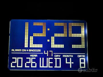 OREGON SCIENTIFIC JM200 - Orologio RADIOCONTROLLATO Ultrapiatto Touch Alluminio ESTETICA SPLENDIDA: Lucida/pristina, zero graffi, alluminio spazzolato + schermo nero ultrapiatto. Vintage 2007 MINT! TEST COMPLETI OGGI: - Display/Touch: Nitido, fluido ora/data/modalita - Sveglia: Suono potente - Snooze (pulsante sup.): Posticipo 5 min - Light: Retroilluminazione brillante 5 sec - RADIOCONTROLATO: Segnale DCF77 FORTE a Milano (test wave finestra) SPECIFICHE: - Modello: JM200 ("JM200 made in PRC" originale) - Dimensioni: 16,5 x 12,5 x 6 cm - 3 batterie AAA (NON incluse) - Manuale ufficiale: Scarica il PDF Italiano/Inglese/Francese/Tedesco dal sito web di Oregon Scientific