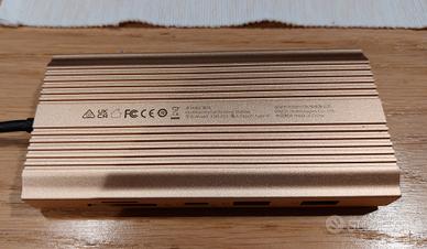 2 HDMI 4K, 1 PD 100 W, 1 Gbps Ethernet, 3 USB 3.0, SD/TF, Audio 1080p, audio da 3,5 mm.
