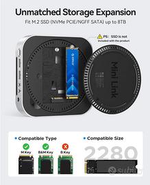 vendo hub ORICO M49P per Mac Mini M4 ancora imballata, NUOVA e mai utilizzata. Le caratteristiche sono le seguenti: - Stazione Versatile per Mac Mini M4: Il Dock ORICO 9-in-1 per Mac Mini M4 integra un alloggiamento SSD M.2, porte USB ad alta velocità, lettori di schede SD/TF e interfacce audio. Ottimizza la connettività del Mac Mini per la massima produttività - Archiviazione Scalabile: Inserite un'unità SSD M.2 NVME o SATA per espandere la capacità di archiviazione fino a 8 TB. Perfetto per progetti multimediali o backup critici (LA SSD NON E' INCLUSA) - Velocità Impareggiabile: Le porte USB-A da 10 Gbps trasferiscono un filmato 4K in pochi secondi, mentre i lettori di schede SD/TF USB 3.0 (UHS-I) importano le foto e i video senza ritardi - Connettività Audio Completa: niente più adattatori! La porta integrata per cuffie/microfono da 3,5 mm trasforma il Mac Mini in una postazione audio completa per chiamate, editing o giochi - Design per Mac Mini M4: La finitura in alluminio spazzolato e le curve eleganti si adattano al design minimalista del Mac Mini. Compatto (127x127x28 mm), si inserisce con discrezione nel vostro spazio di lavoro. Questo MiniLink è ampiamente compatibile con MacOS, Windows, HarmonyOS, Linux, Android e iOS. Con una garanzia di 1 anno per un utilizzo senza preoccupazioni. Articolo NUOVO, PREZZO NON TRATTABILE, offerte insensatamente al ribasso saranno ignorate. Si prega di verificare la compatibilità di questo accessorio prima dell'acquisto. Posso inviare foto reali dell'oggetto comprovanti lo stato effettivo.