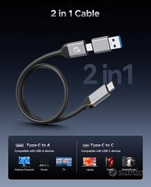 Cavo Universale Incluso: Doppio cavo 2-in-1 (USB-C a USB-C + USB-C a USB-A). Collegati a laptop USB-C, tablet, smartphone (OTG), PC USB-A, PS5/Xbox e TV – senza adattatori!