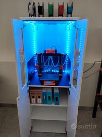 Se interessati, con l'aggiunta di 50 euro, è disponibile anche il mobile che la contiene, che è stato progettato per poter stampare multicolore senza l'utilizzo del buffer e può essere usato come enclosure per riscaldare la camera di stampa in maniera passiva.